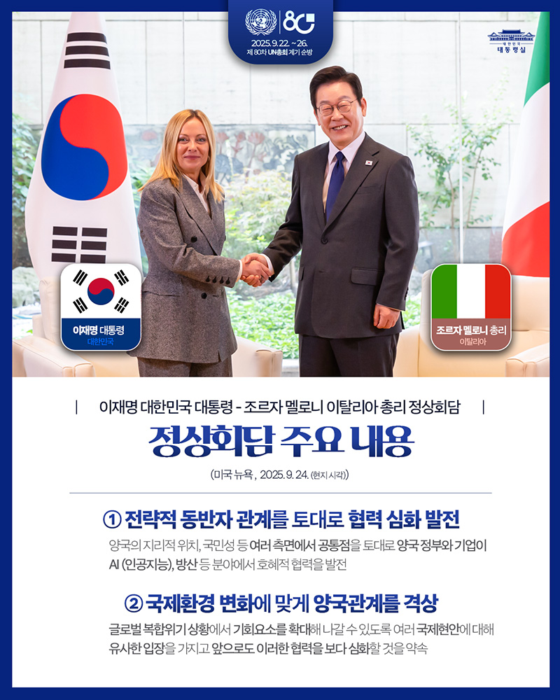 ■ 정상회담 주요 내용(미국 뉴욕, 2025.9.24. 현지시각)